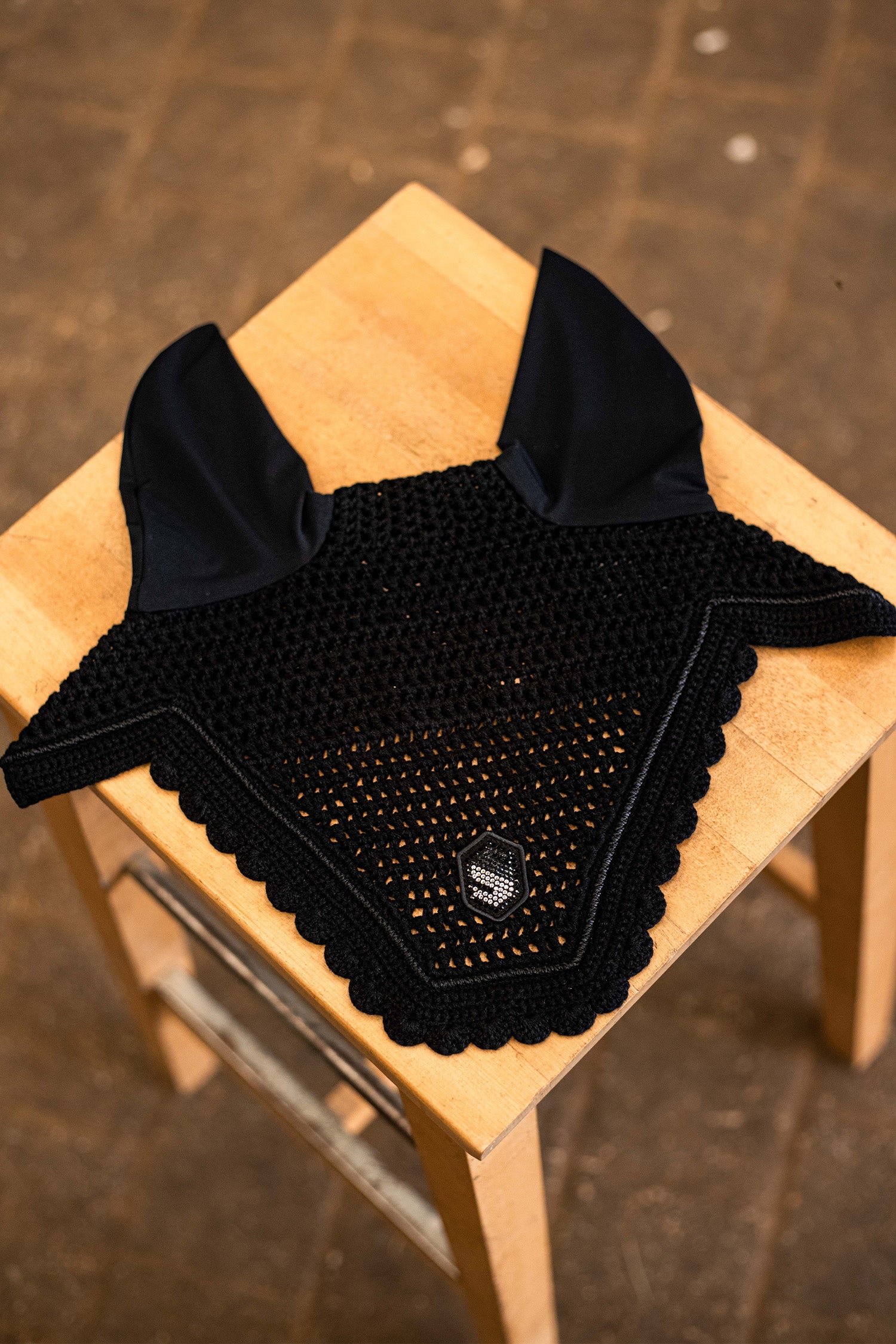 Den nøje udformede pasform sikrer, at fluehætten ligger stabilt på plads under ridning, mens Samshield-logoet foran, udsmykket med Swarovski-krystaller, tilfører en eksklusiv og diskret elegance.