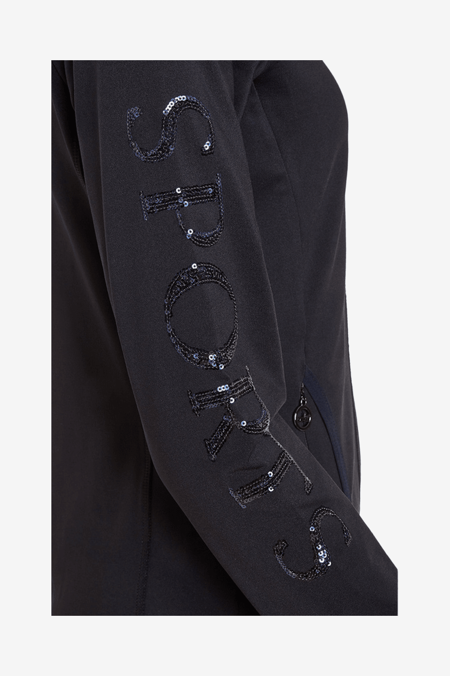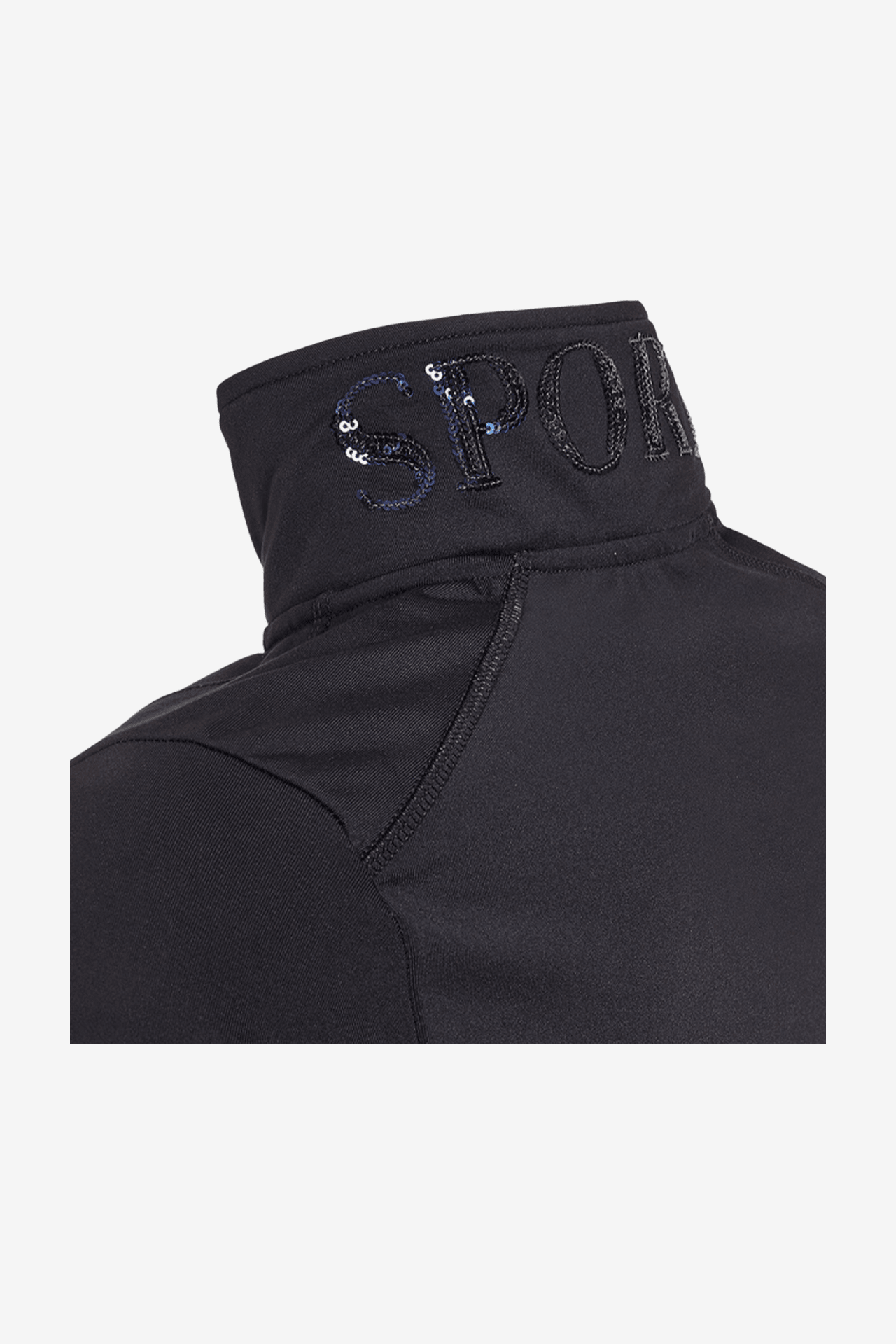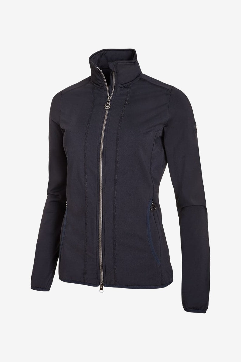 Schockemöhle Rabea er en blød og funktionel jakke. Udstyret med dobbelte lommer på begge sider, fuld 2-vejs lynlås foran i en klassisk marineblå farve. Glimmerdetaljer på armen og nakken.