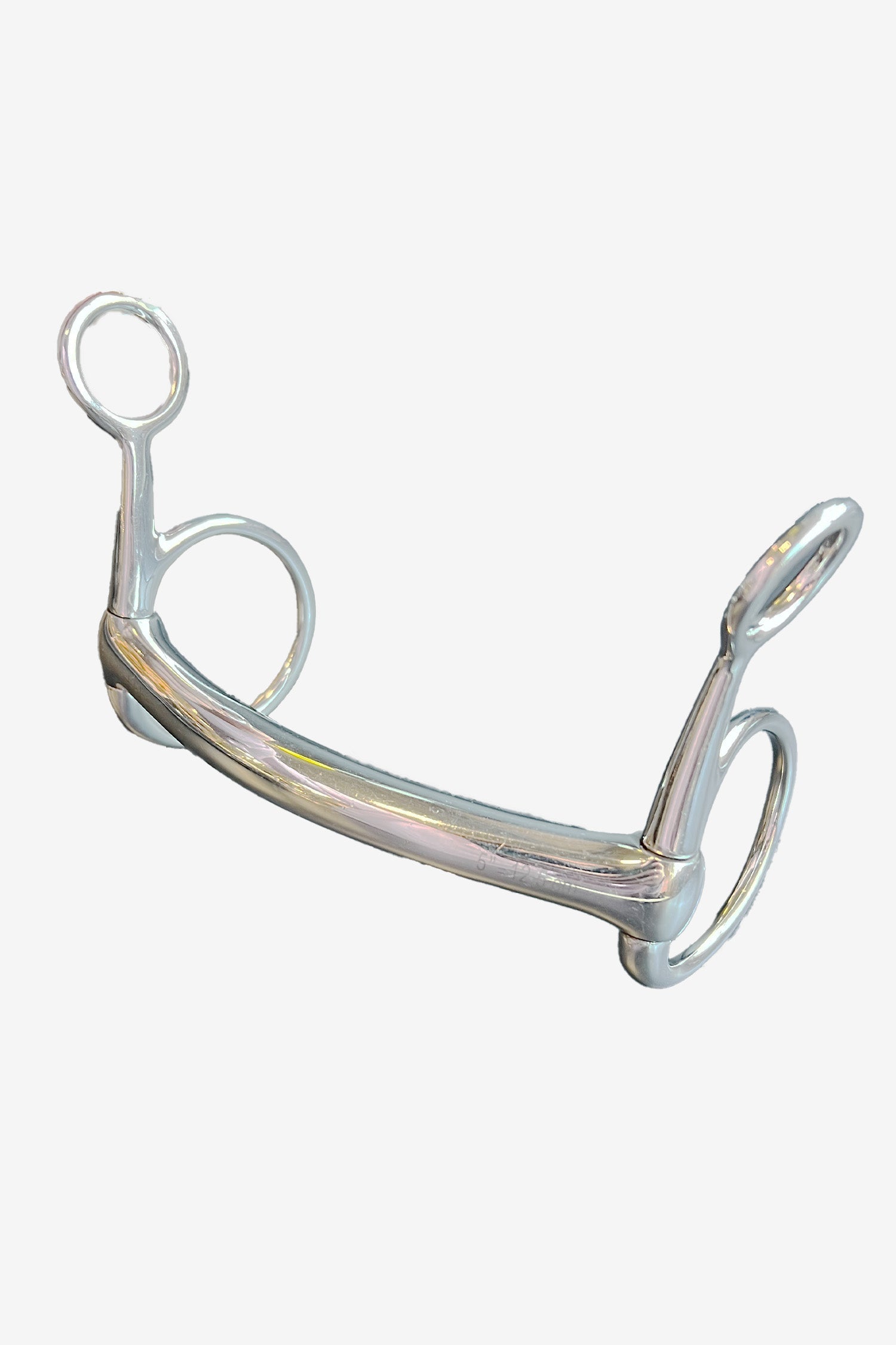 Et lige bid med de karakteristiske Baucher-fastgørelser, som giver en let løftende effekt i hestens mund. Konstruktionen gør, at biddet ligger stille og stabilt, hvilket giver et roligt og jævnt tryk over tungen og lanerne.