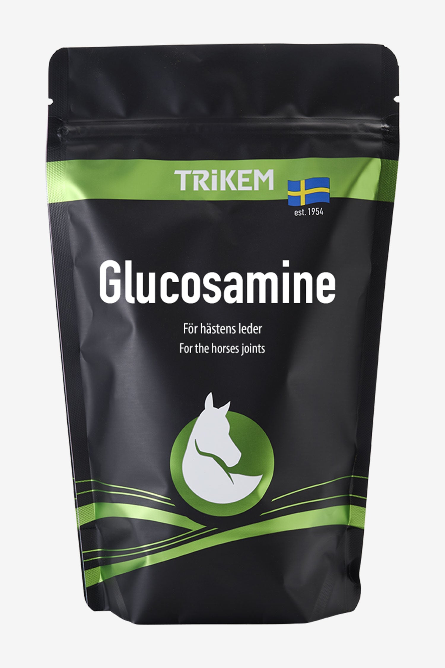 Glucosamin er et naturligt forekommende stof, der findes i f.eks. brusk, sener og ledbånd. Med stigende alder eller ved langvarig træning kan der opstå slid på leddenes brusk, hvilket kan mindske leddenes bevægelighed. Trikem Glucosamine indeholder glucosaminsulfat, udvundet fra skaldyr, samt mangan – begge stoffer, der indgår i hestens ledbrusk.