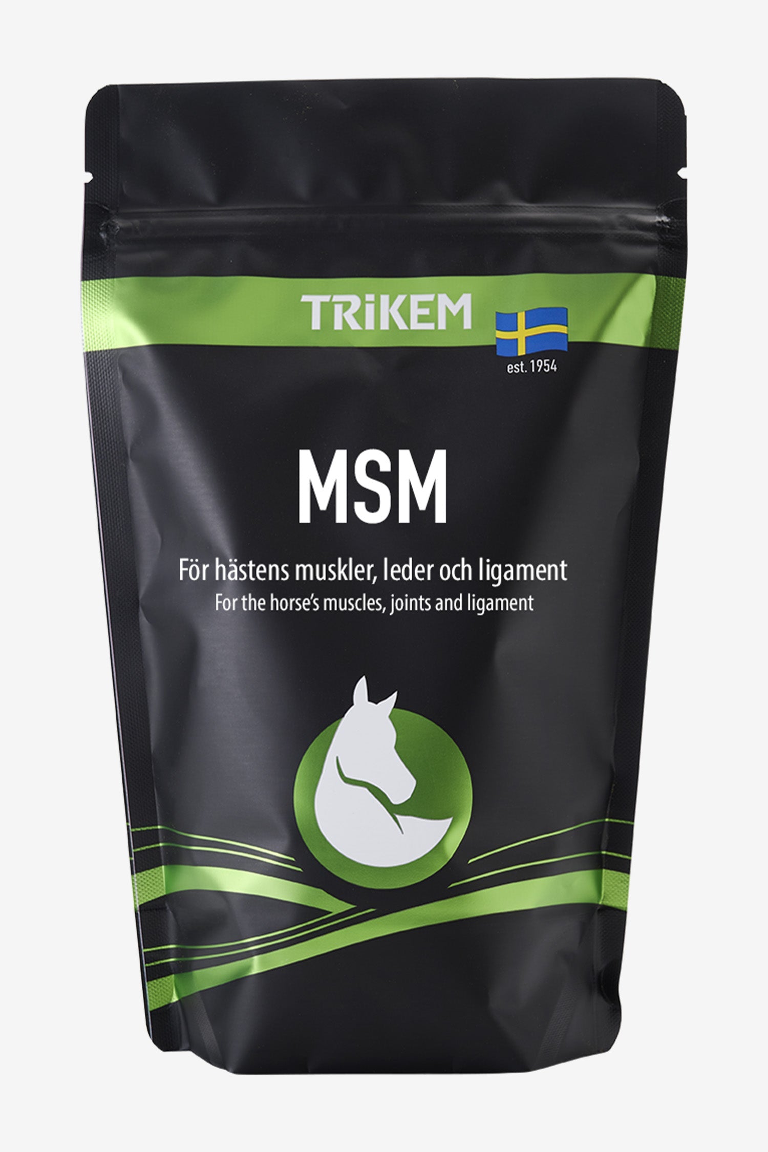 MSM-Methylsulfonylmethan er en naturligt forekommende organisk svovlforbindelse, der spiller en central rolle i opbygningen af kroppens celler. MSM bidrager til at øge cellevæggens gennemtrængelighed, hvilket letter udskillelsen af affaldsstoffer og giver et effektivt optag af næringsstoffer. MSM bidrager også til at forbedre musklernes cirkulation og iltoptagelse, hvilket kan udskyde mælkesyregrænsen. MSM kan desuden fungere som en antioxidant og dæmpe mængden af frie radikaler efter fysisk anstrengelse, hvilket igen kan forbedre hestens restitution.