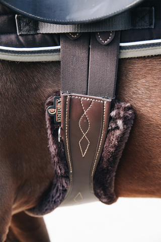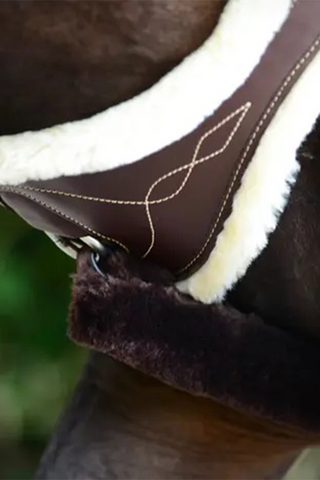 En fårskinnsgjord är en sadgjord fodrad med äkta eller syntetiskt fårskinn, som används för att fästa sadeln på hästen. Den mjuka och tryckfördelande ytan minimerar risken för skav och obehag, samtidigt som den ger en lyxig känsla och snygg finish. Om hästen ofta får skav, reagerar negativt vid sadling eller har tunn hud, kan en fårskinnsgjord göra stor skillnad.