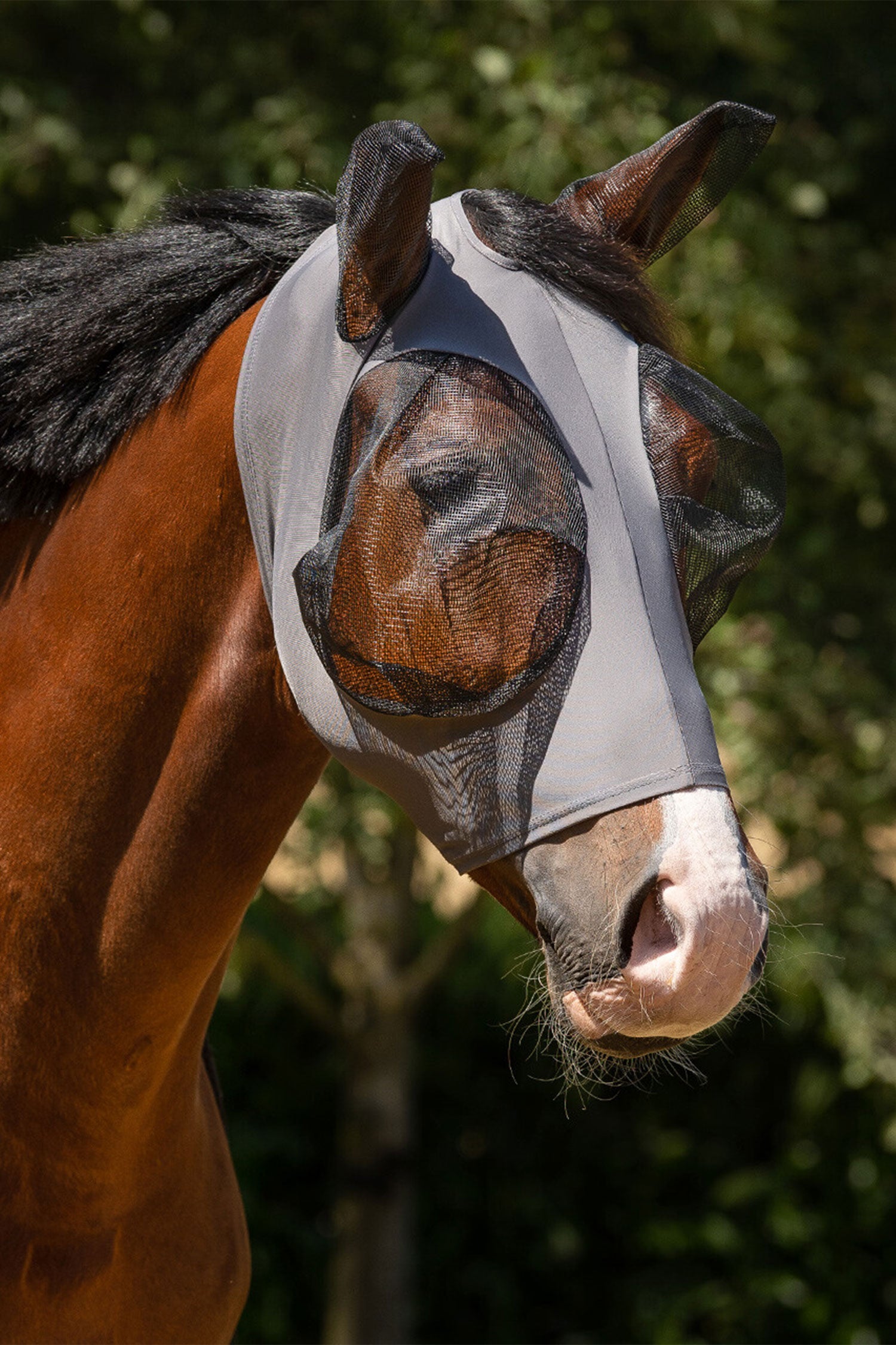 Skydda din häst mot irriterande flugor och insekter med denna smarta och bekväma flughuva från QHP. Tillverkad i ett smidigt, elastiskt material som formar sig efter hästens huvud och ger hög komfort – perfekt för sommarmånaderna i hagen.