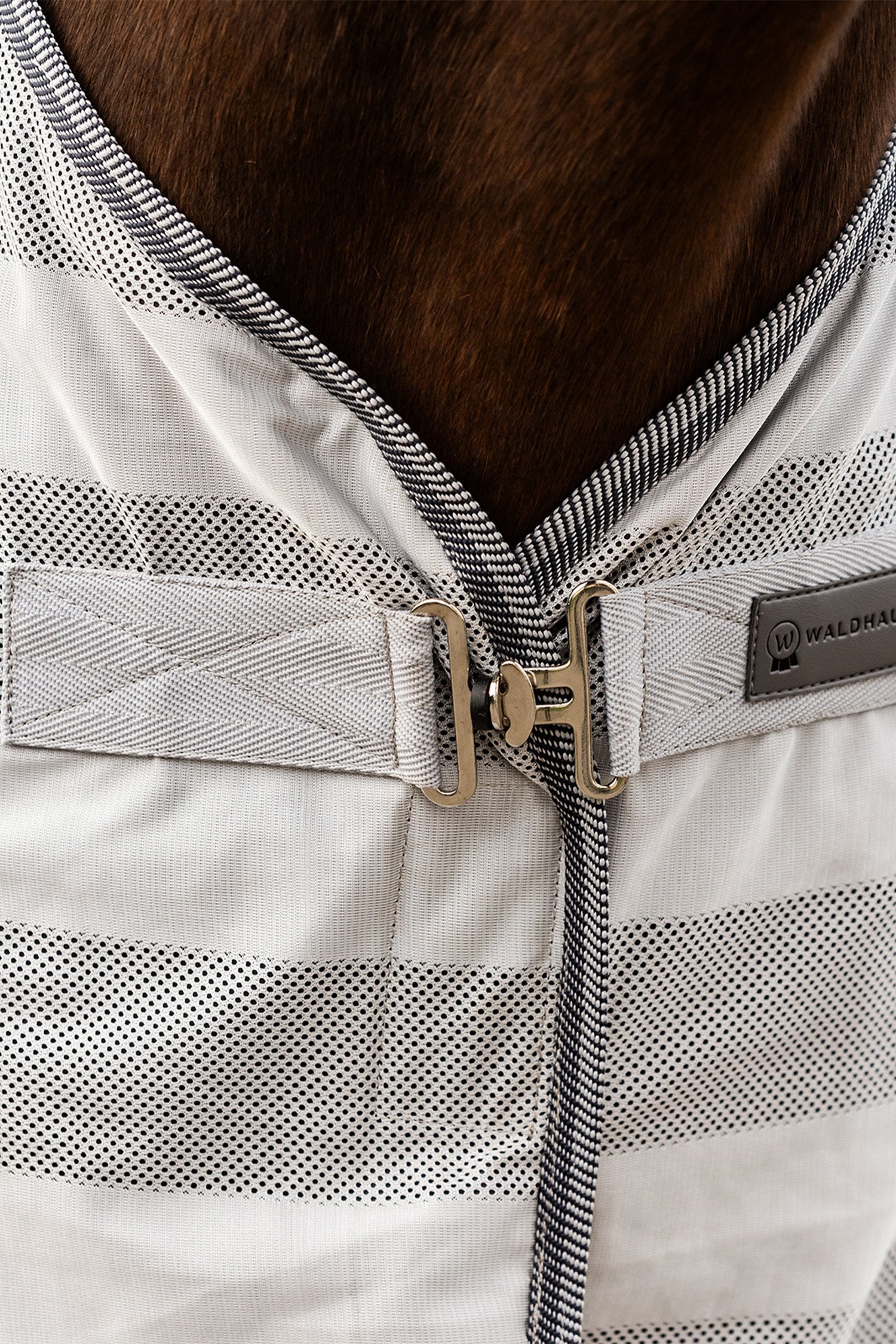 Täcket är utrustat med avtagbara och justerbara maggjordar, vilket gör det enkelt att anpassa passformen efter din hästs kroppsform och rörelser. Det praktiska T-spännet framtill, i kombination med ett säkrande kardborreband, gör att täcket sitter stadigt på plats utan att skava eller glida.