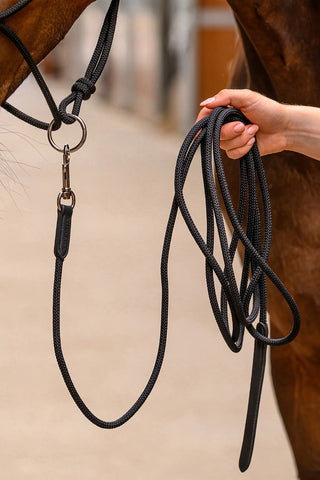 Tillverkad i starka och slitstarka material är Rope Halter byggd för att hålla även vid regelbunden träning. Läderdetaljerna ger inte bara ett elegant uttryck utan bidrar också till ökad komfort och en säker passform.