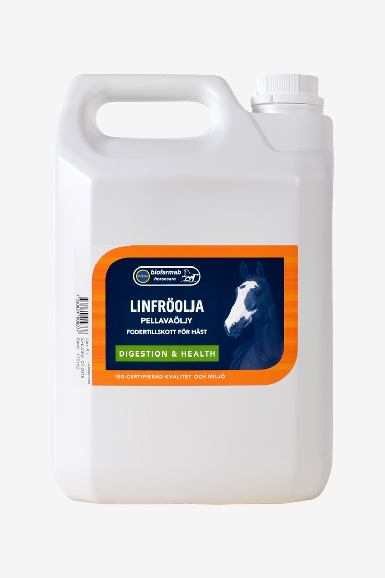Fodertillskott till häst. Svensk kallpressad linfröolja med högt innehåll av långvarig energi och bra fördelning mellan Omega 3 och 6. Linfröolja har därför positiv effekt på leder, hjärta/kärl, hud och har goda dietiska effekter.