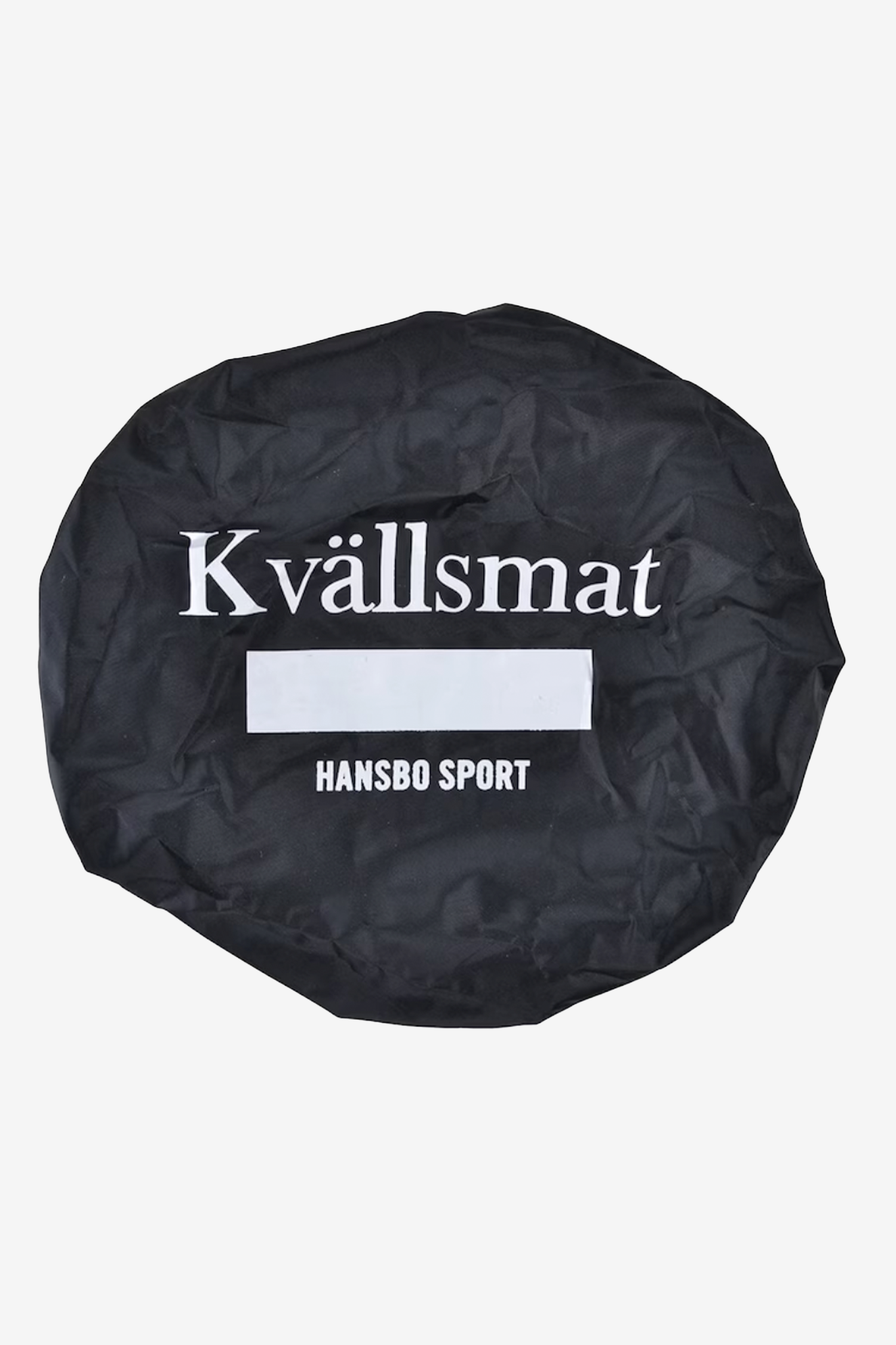 Ett smidigt överdrag att sätta på hinkarna. Vit text och Hansbo logo.