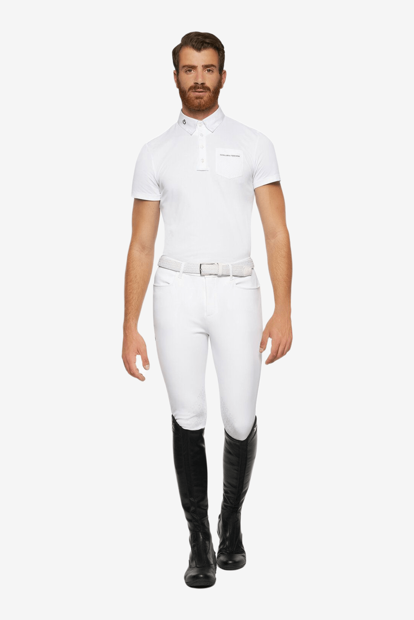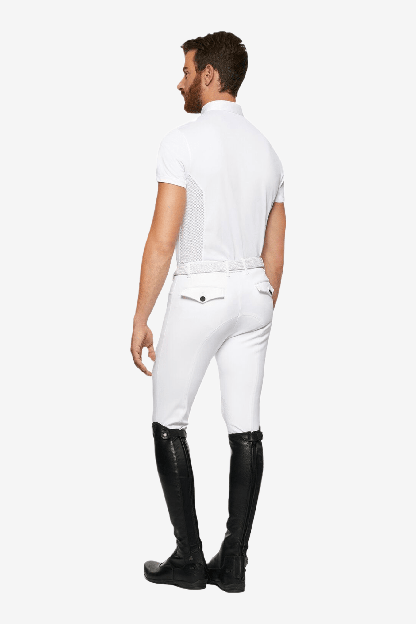 Det andningsaktiva pique-stickade tekniska tyget har en smal passform och är elegant trimmad med mesh-paneler i sidorna samt en bröstficka i perforerat tyg.