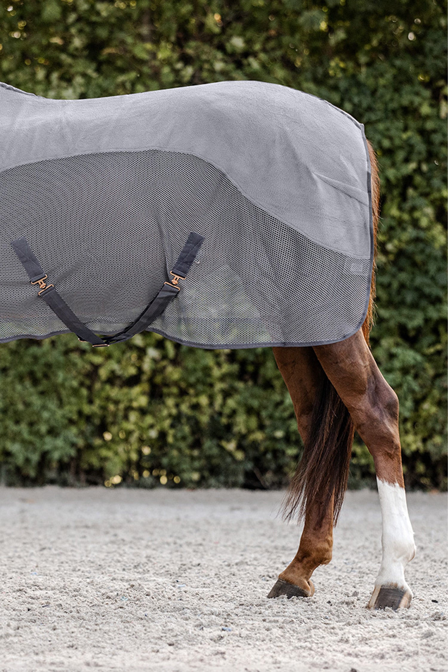 Detta täcke är perfekt för tävlingar och träningar – både stilrent och praktiskt. Tillverkat i ett särskilt luftgenomsläppligt nätmaterial som ger hästen en sval och behaglig känsla även under varma dagar eller efter ansträngning.