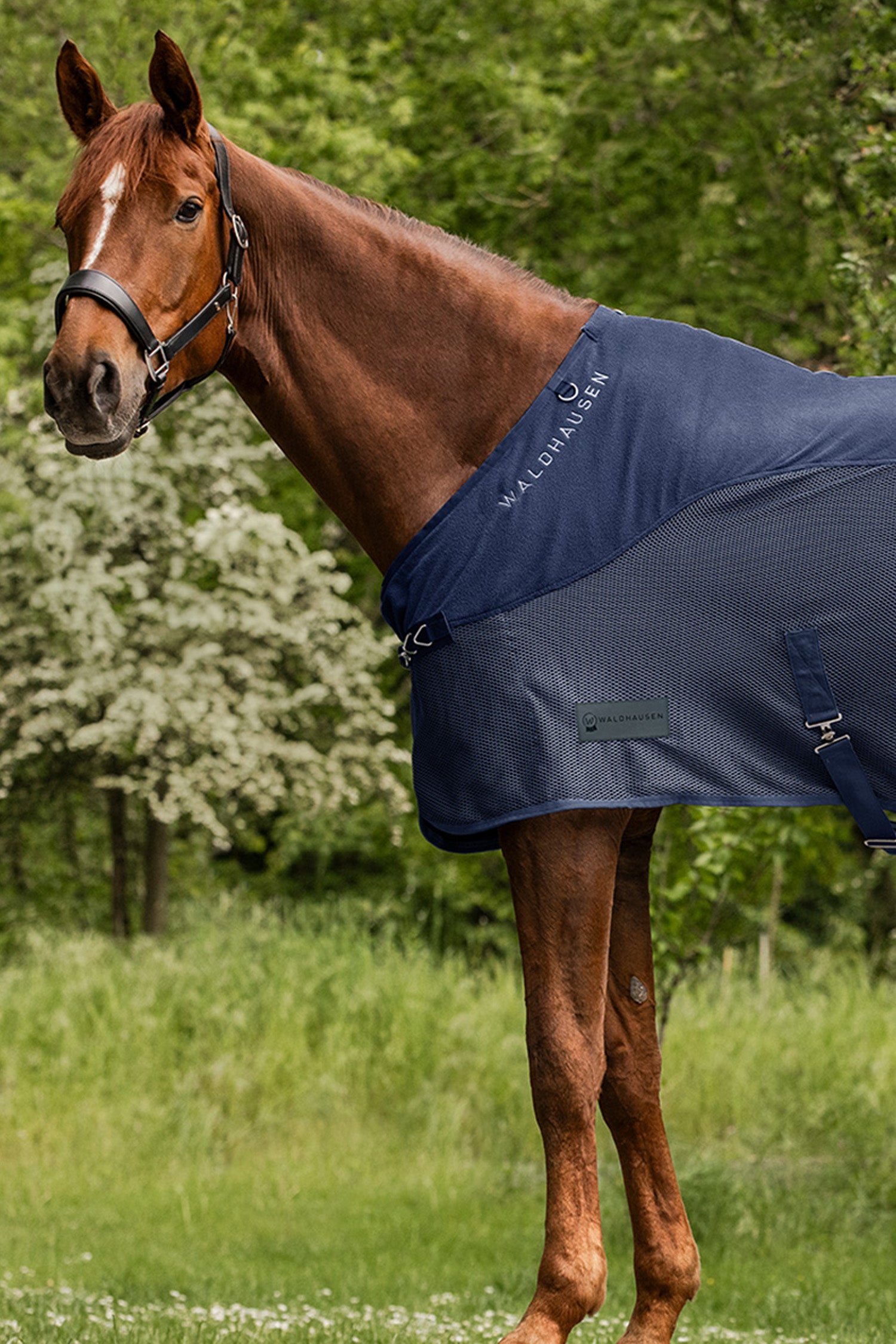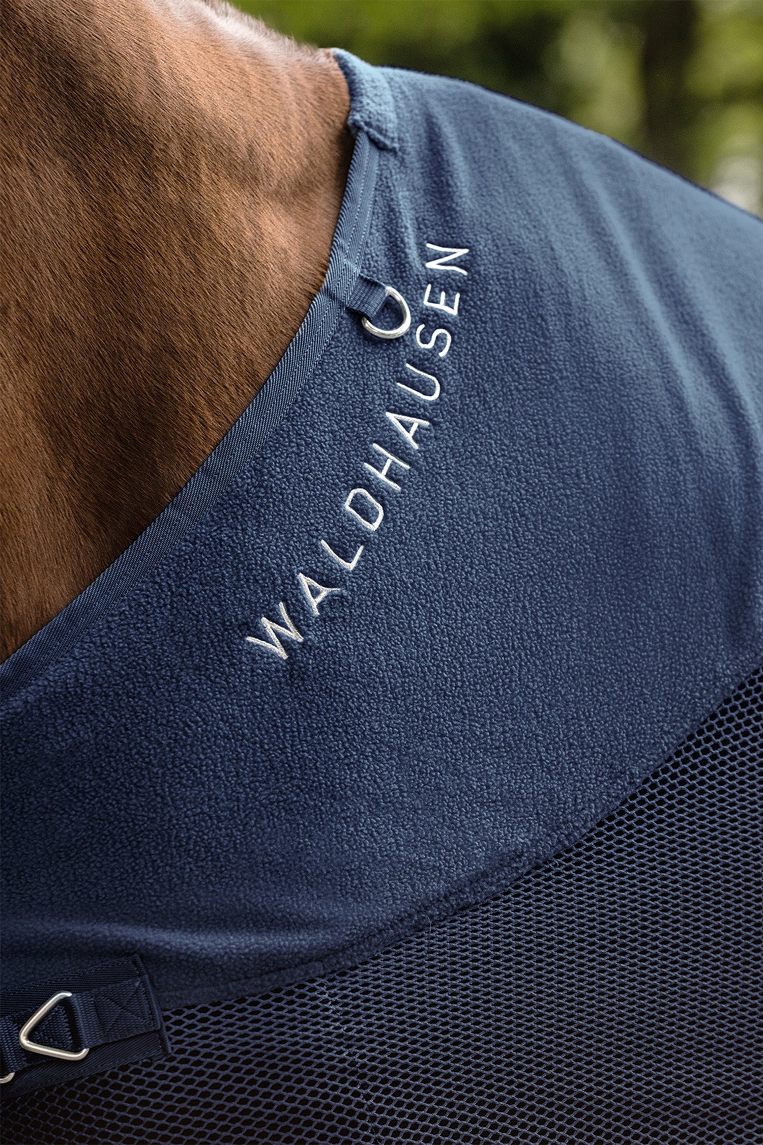 Avslutningsvis pryds täcket av ett dekorativt Waldhausen-broderi, vilket ger ett extra elegant intryck vid tävling eller träning.