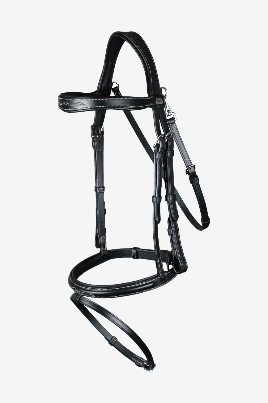 Detaljerna med fancy stitching ger en elegant finish utan att kompromissa på funktionaliteten. Det anatomiska nackstycket och den mjuka konstruktionen bidrar till en jämn tryckfördelning och ökad komfort för hästen.