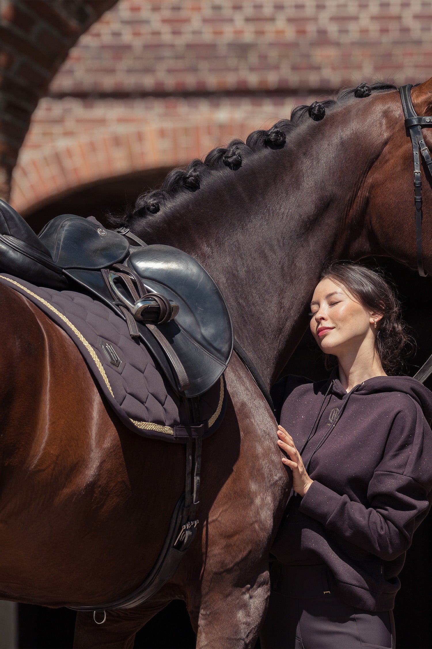 Eskadron Pro Soft Emblem Saddle Cloth är ett exklusivt schabrak med mjuk pro soft-yta och insida i mjuk bomull som andas och ger hög komfort mot hästens rygg. Den stora, volymiga quiltningen ger effektiv stötdämpning och jämn tryckfördelning under sadeln.