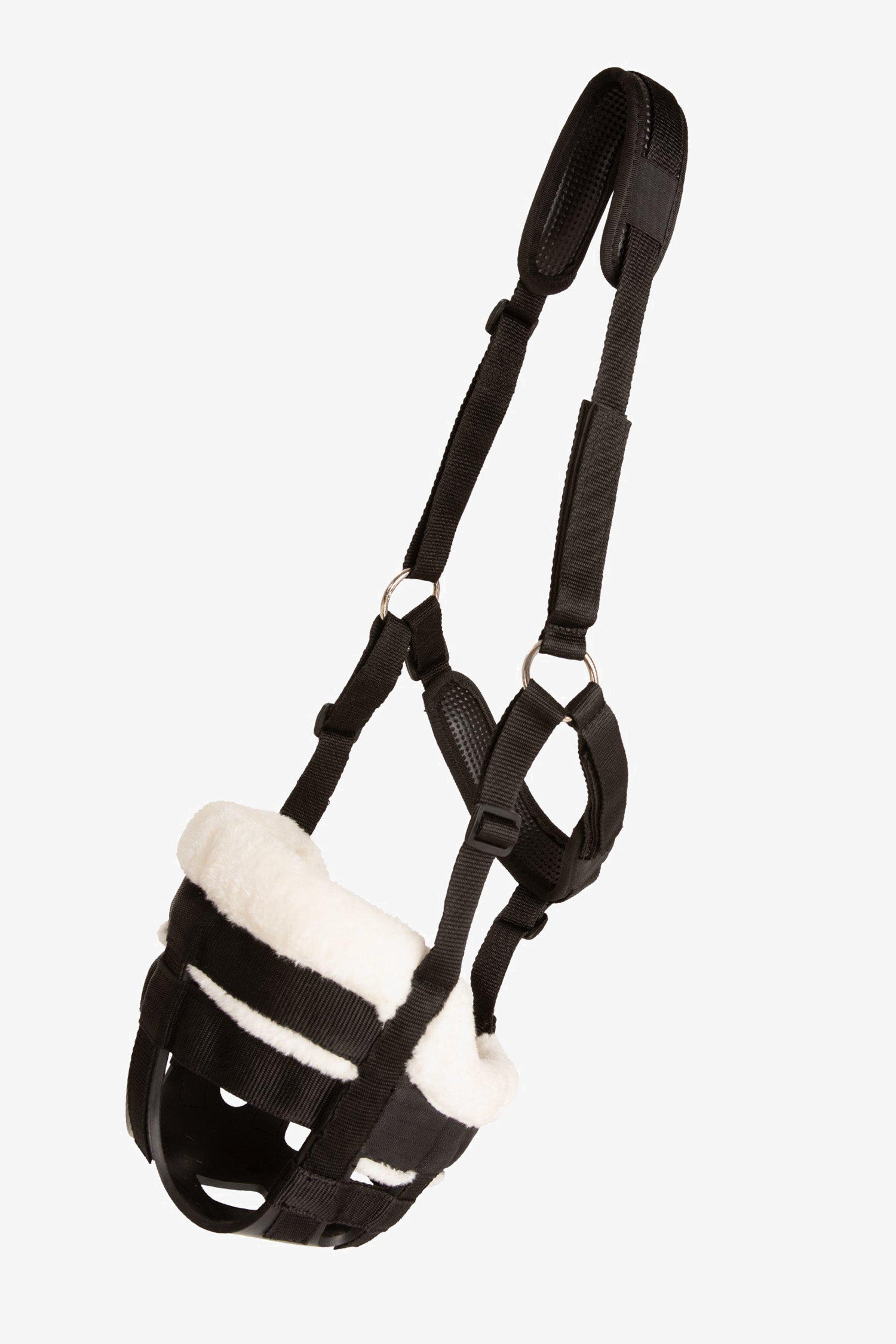 Käk- och nackremmarna är mjukt fodrade för att minimera tryck och skav, och den gummerade nosdelen är klädd med syntetpäls som ger extra skydd mot skav och irritation.