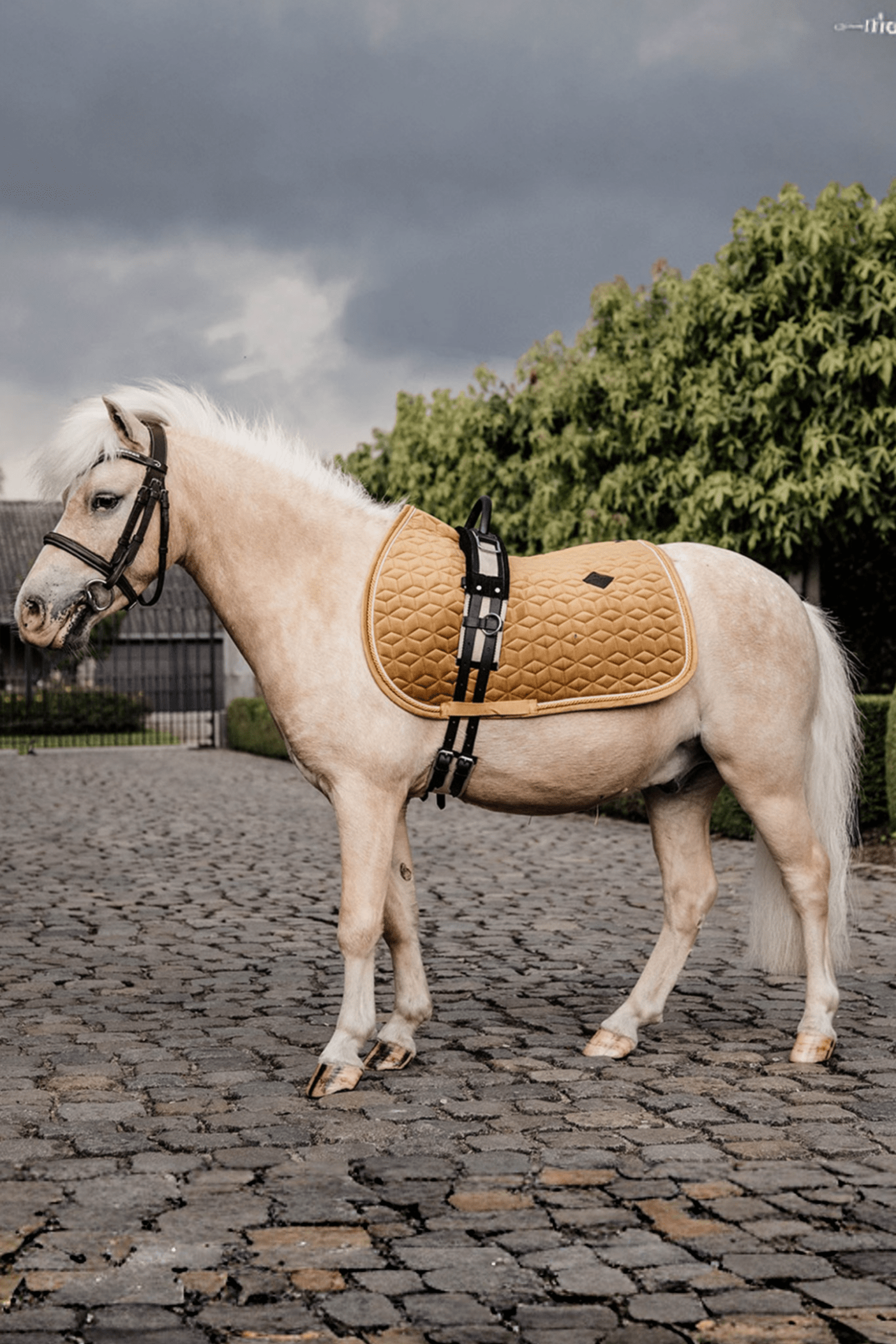 Det här schabraket har inga irriterande remmar att fästa i sadeln, bara en nylonrem för sadelgjorden.