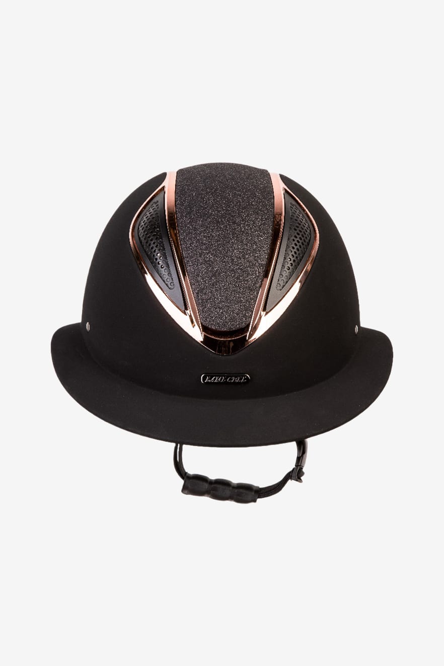 En lättviktshjälm tillverkad av högkvalitativt läder på hjälm och hakband.