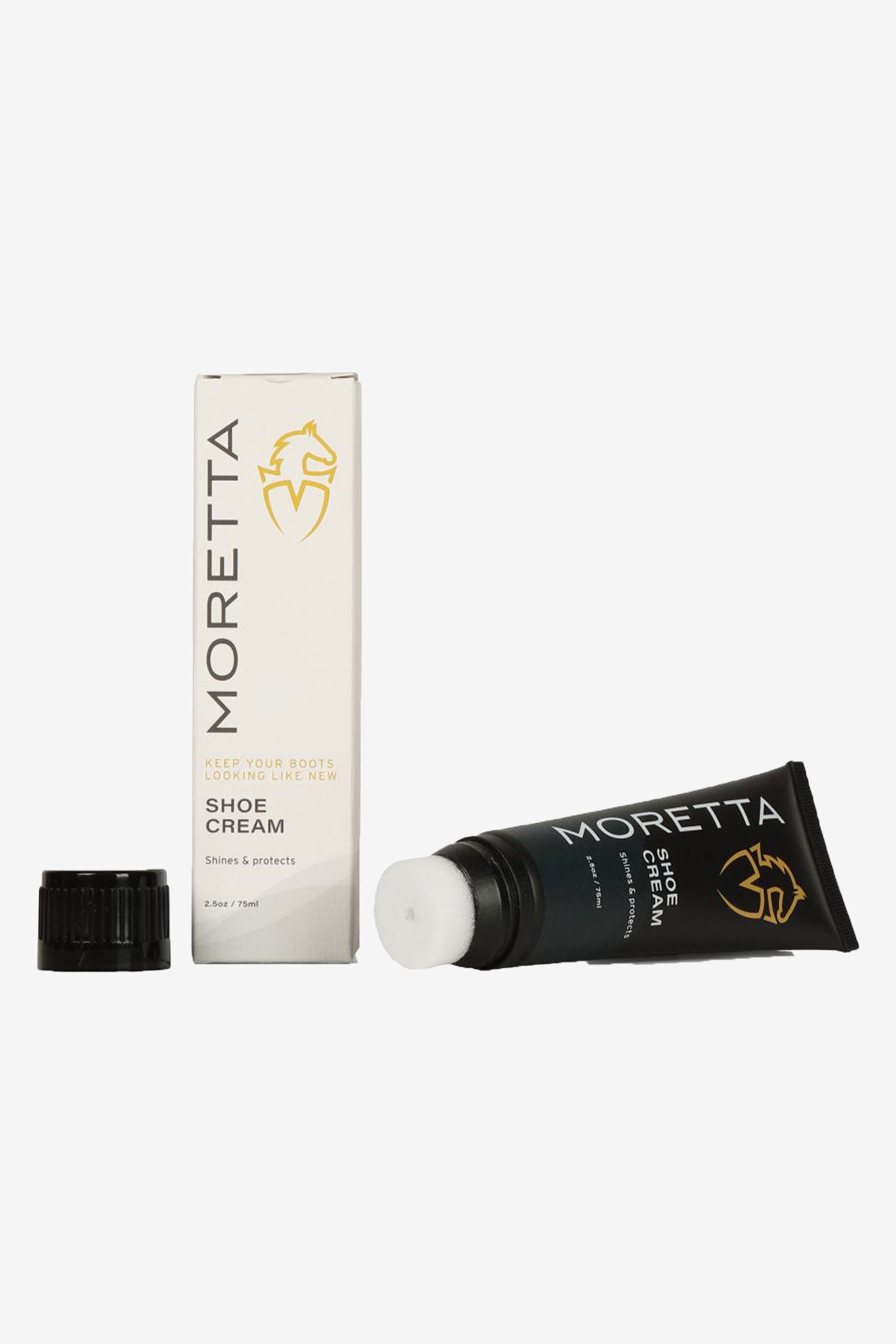 Moretta skokräm både rengör och skyddar mot vatten och fläckar.