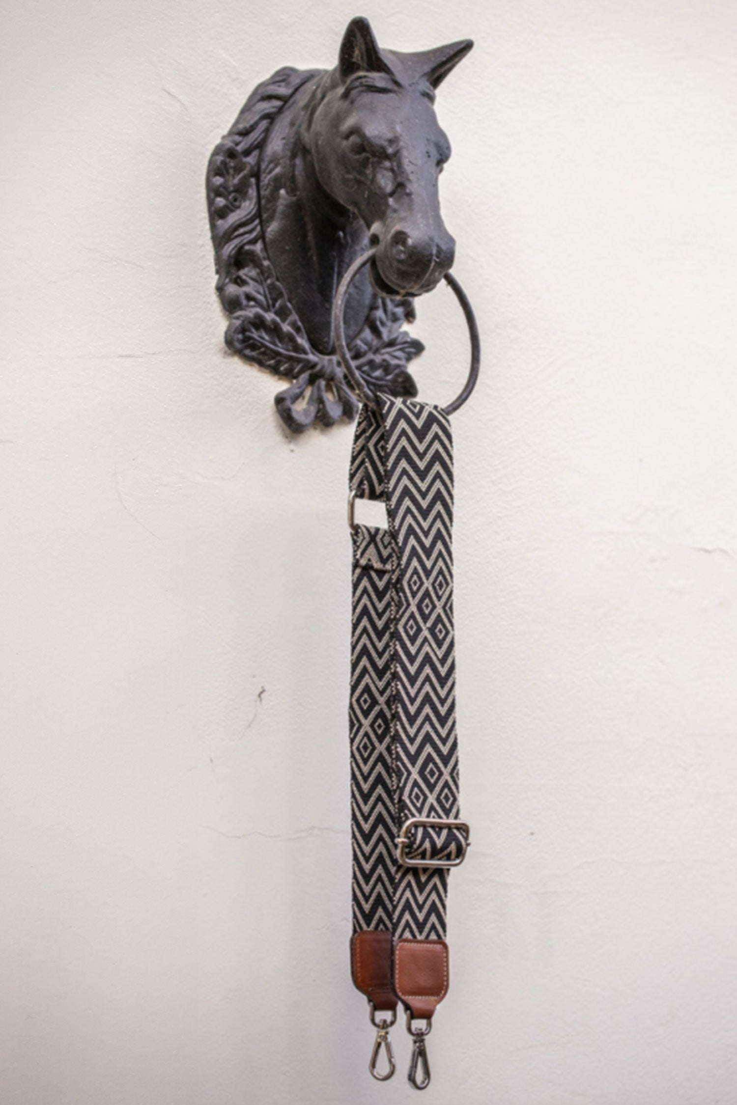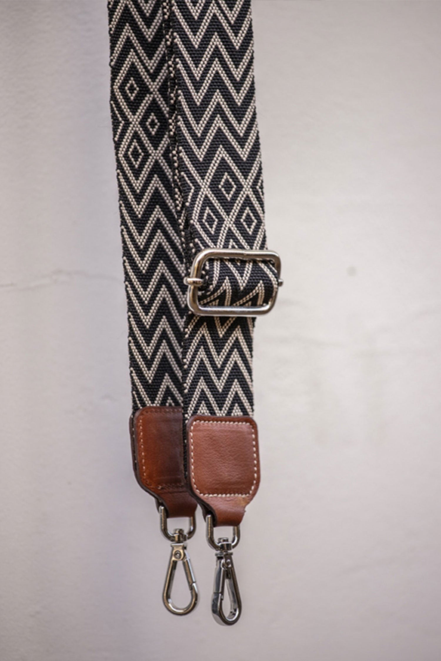 Den är 5 cm bred och kan justeras i längd, efter dina behov, från 75 cm till 130 cm.