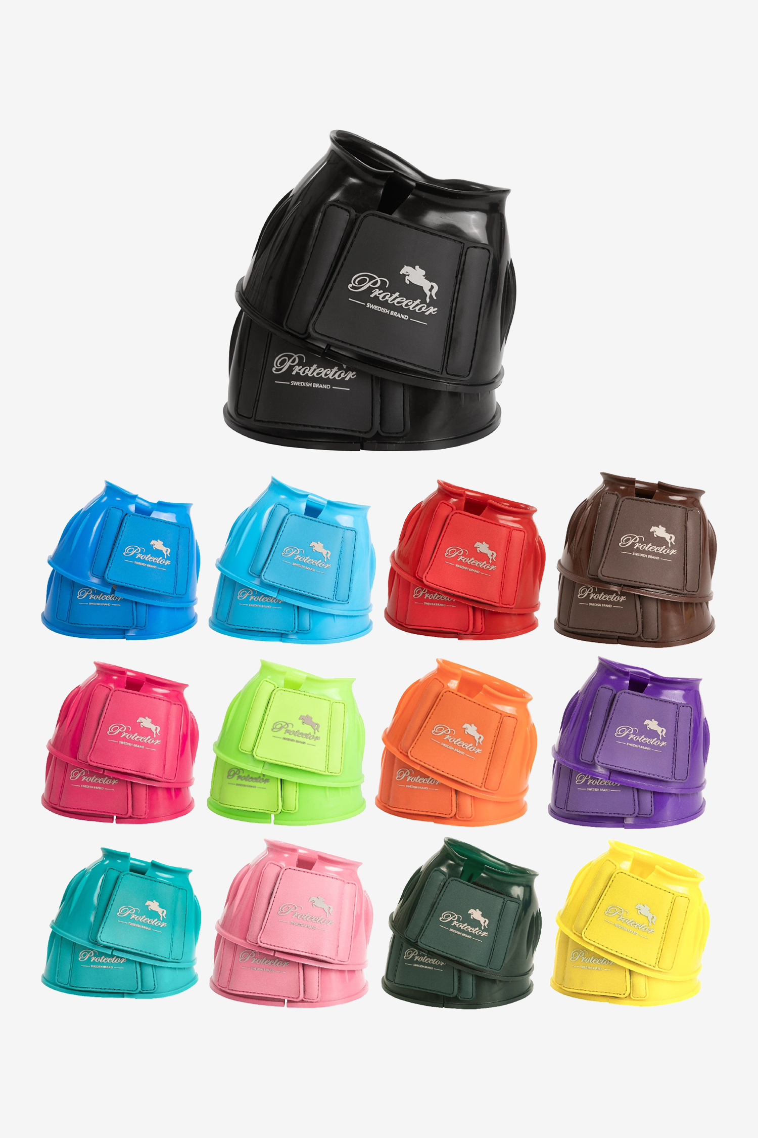 Den praktiska dubbla kardborreknäppningen gör dom enkla att justera för en säker passform. Utformade för att skydda hästens ballar och hovar från stötar och skador, samtidigt som de effektivt förhindrar att hästen trampar av sig skorna.