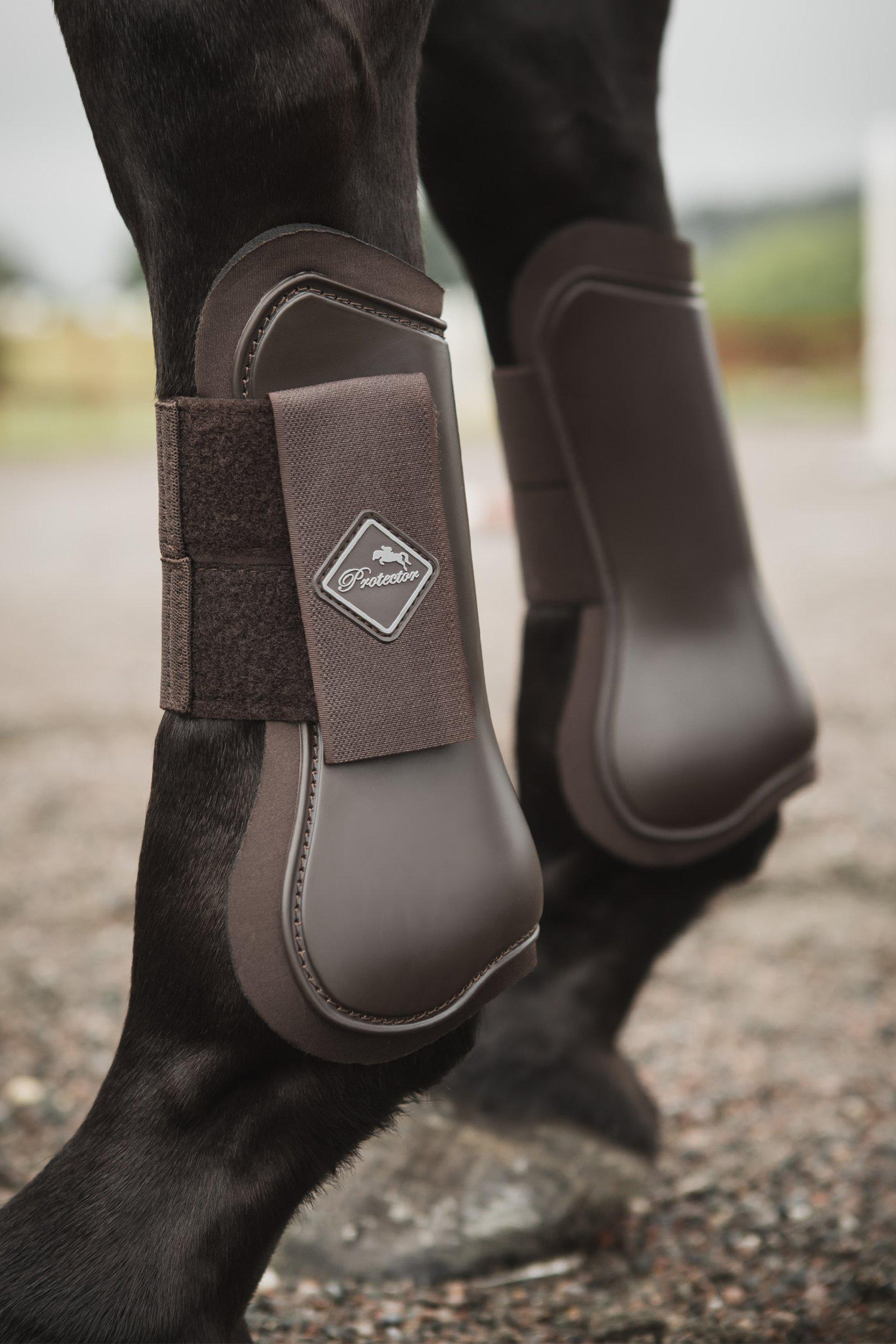 Smidiga och skyddande senskydd från Protector, utformade för att ge både säkerhet och komfort under ridning. Skydden har en slagtålig utsida som effektivt dämpar stötar och skyddar hästens ben mot slag och stötar – perfekt för både träning och tävling.