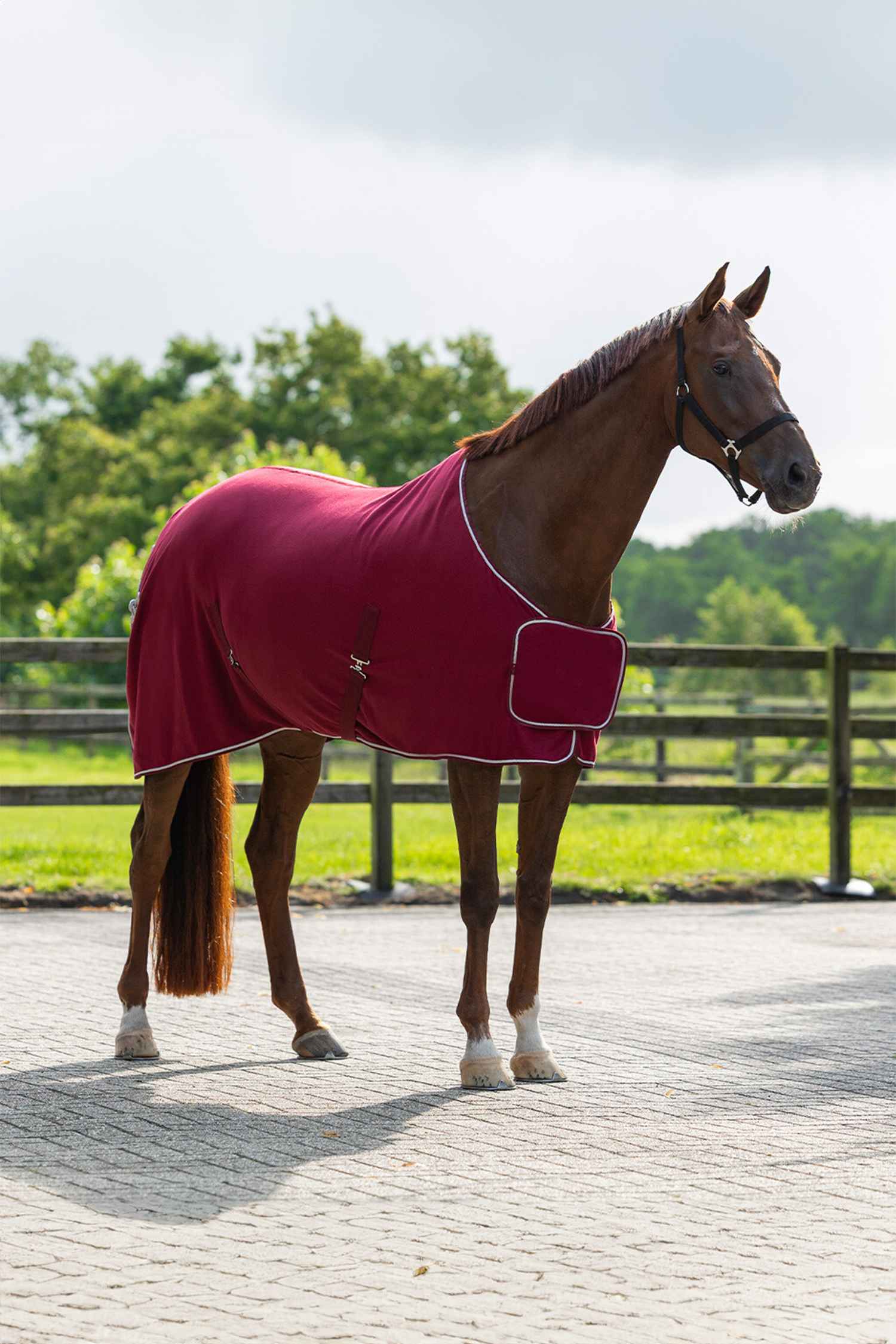 Tillverkat i mjukt och slitstarkt 240 g fleece som effektivt transporterar bort fukt och samtidigt känns behagligt mot hästens hud. De avtagbara kryssgjordarna gör täcket mångsidigt och enkelt att anpassa efter behov, medan de dubbla framknäppningarna täcks av en snygg bröstflik med kardborrestängning för en extra exklusiv finish.