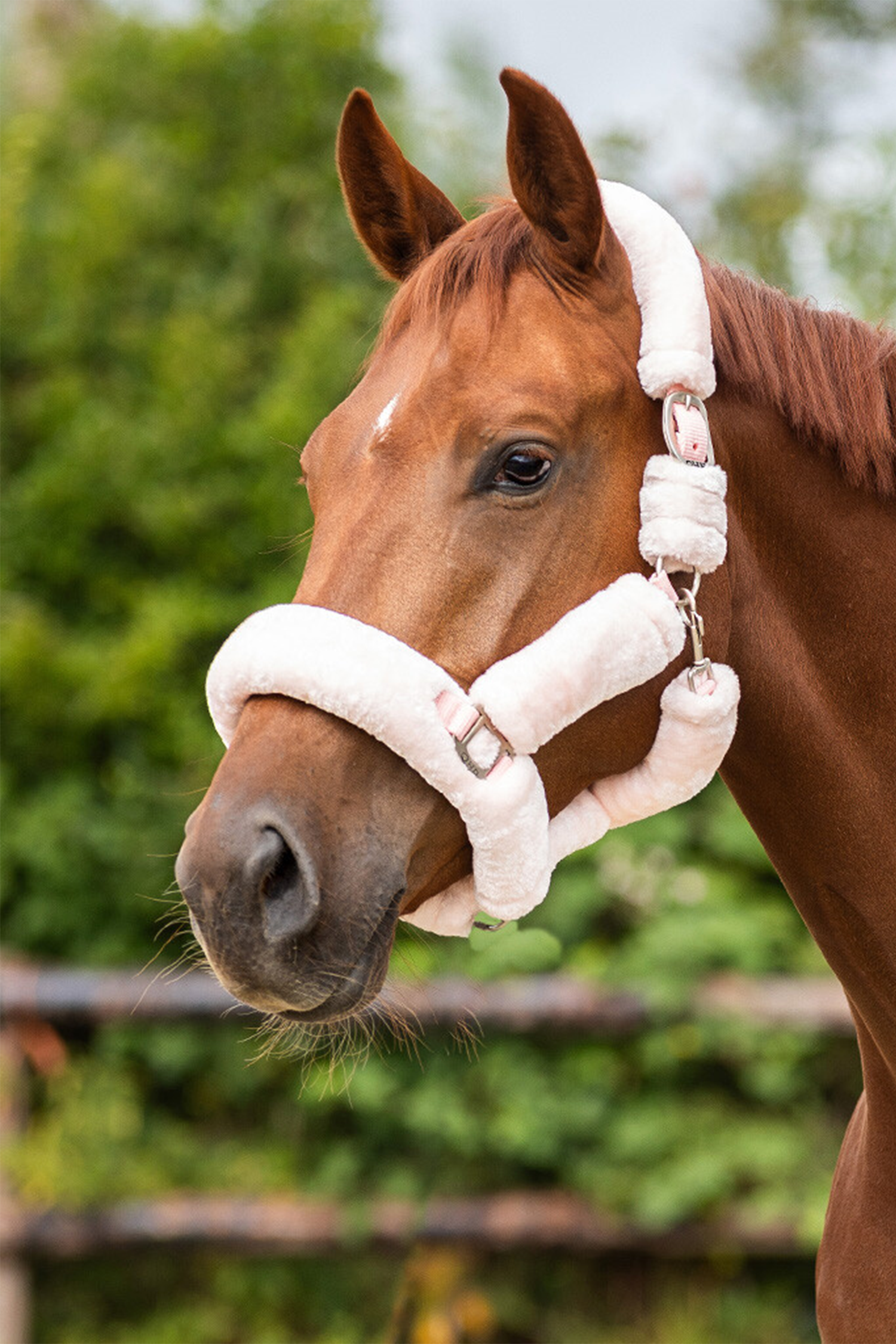 Grimma Alaska är en extra mjuk och bekväm grimma som är helt klädd i imitationsull för maximal komfort. Den är särskilt lämplig för hästar med känslig hud, då det mjuka materialet minskar risken för skav och tryck.