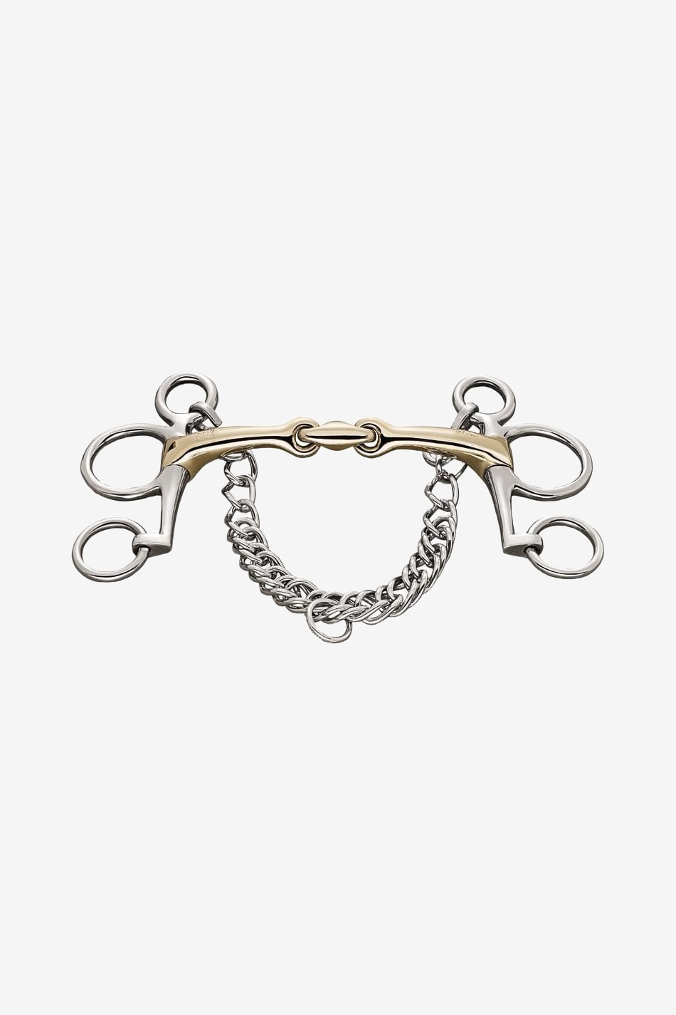 Inget tryck på lanerna. Ger ett jämnt tryck på hästens tunga. Snäll mot munnen och tungan. Länken av bettet vänder sig i 45° och blir aldrig klämmande eller trycker upp mot hästens gom.