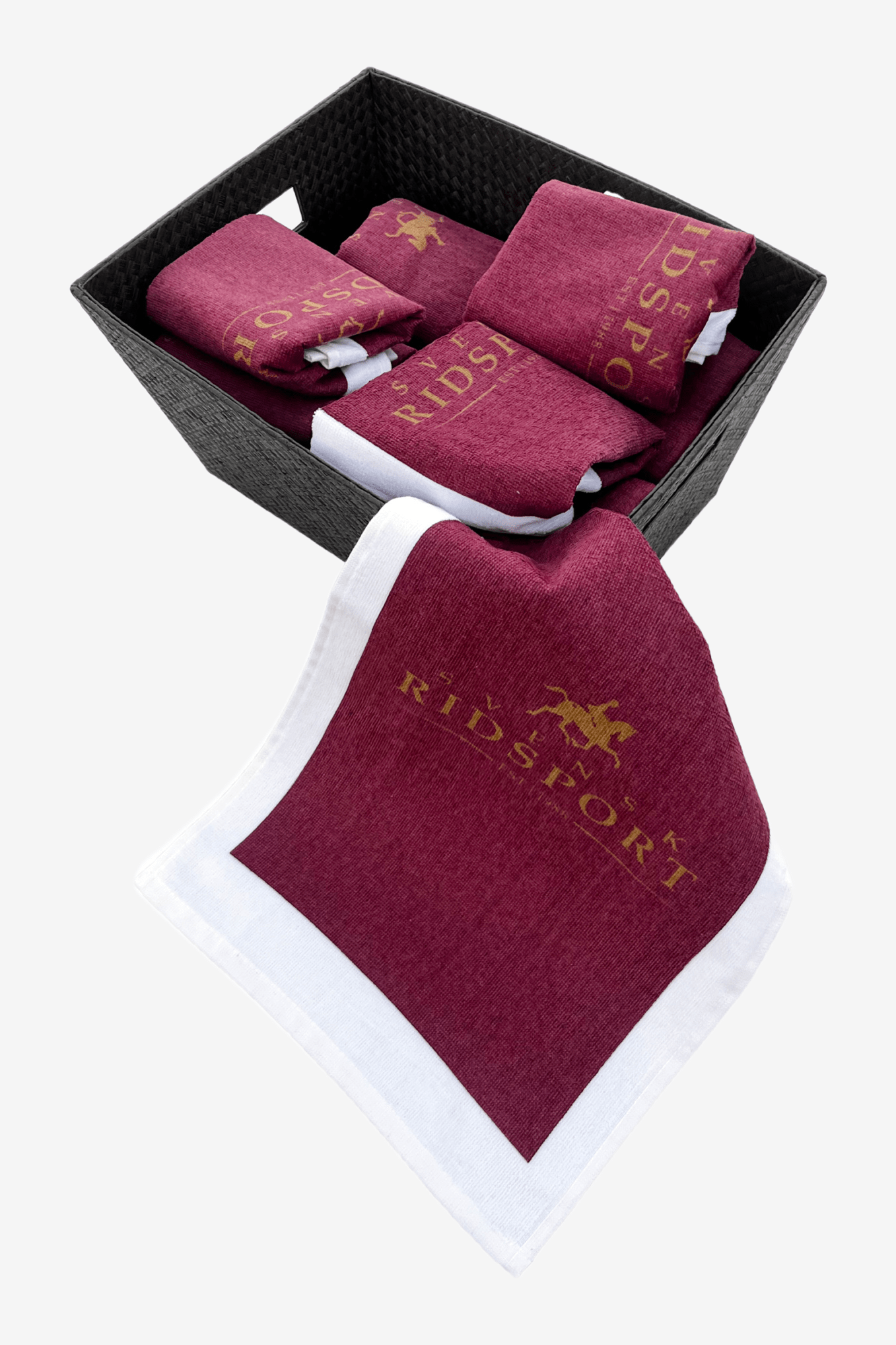 Praktisk handduk med Svensk Ridsport logga. Perfekt att ha i stallet när du putsar din utrustning eller torkar hästens ögon och mule. Lagom storlek och med bra uppsugningsförmåga.