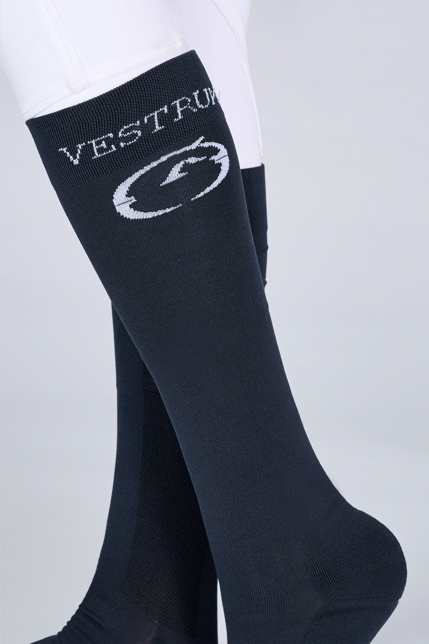 Snygga, tunna och bekväma ridstrumpor från Italienska Vestrum till både dam och herr. Vestrum logga samt text längst upp på skaftet.