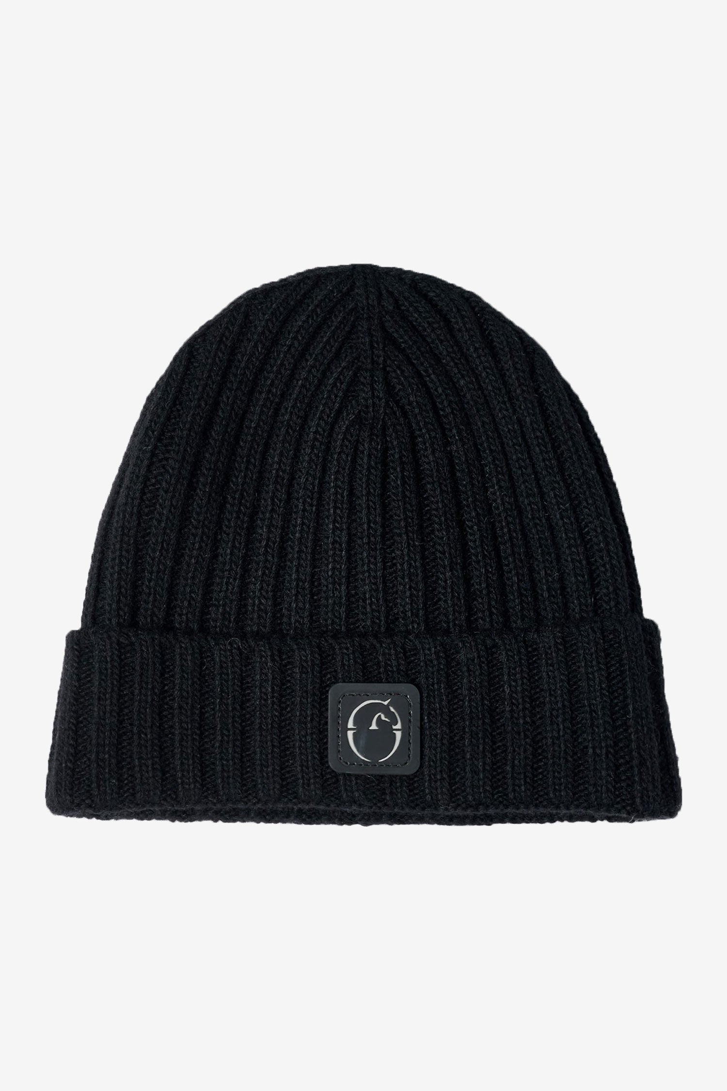 Stickad mössa i Ullmix med stilren logga framtill.